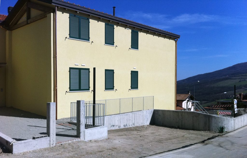 Integrated Design srl ha eseguito la Direzione Lavori, il Coordinamento della Sicurezza e la progettazione di alcune varianti in corso d’opera legate a Perizie Suppletive. La palazzina è composta di 6 appartamenti, cantine e box auto al piano seminterrato. Dall’accesso pedonale si accede al vano scala da cui si scende al piano seminterrato ai locali di cantina e autorimesse, si accede a tre alloggi collocati al livello d’ingresso, o si sale al piano superiore dove sono ubicati altrettanti tre alloggi. Il vano scala funge da elemento centrale di snodo attorno al quale si articolano tre corpi di fabbrica formalmente indipendenti, entro i quali trovano collocazione gli alloggi (due sovrapposti per ciascun blocco, nella misura di uno per piano, per un totale appunto di sei alloggi). Gli elementi frontali sono coronati da capriate in legno, e gli alloggi all’ultimo piano sono mansardati con struttura di copertura a vista realizzata con travetti di legno. I sei alloggi realizzati sono tutti dotati di una camera doppia, una camera singola, un bagno, un soggiorno/cucina.